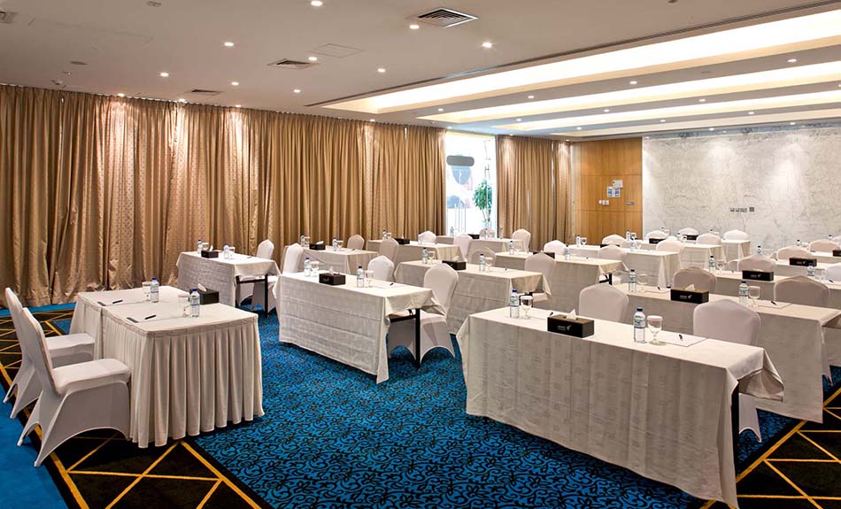 Conveniently accessible and stylishly decorated with a mixture of Arabian and modern fixtures, the hall provides a distinctive setting for various events.